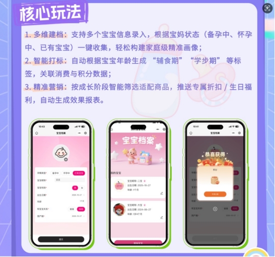 宝宝档案功能 + 智能打标模块 + 精准营销自动化引擎