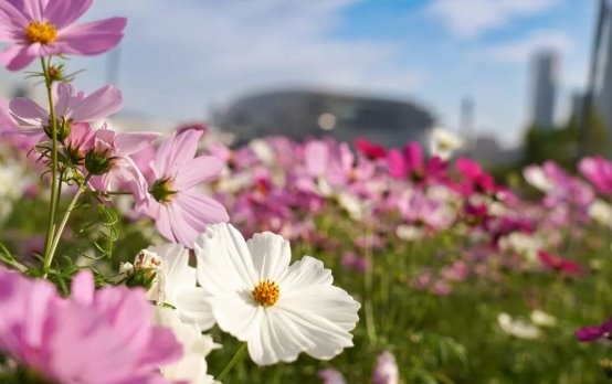 这片花海吸引的不仅是摄影爱好者和打卡游客,更是那些在快节奏生活中寻找喘息空间的都市人。一位带着孩子的母亲说:“每个周末都带孩子去商场、游乐场,这一次来到花海,孩子兴奋得不得了,我也感到前所未有的放松。”一对年轻情侣则表示:“在这里拍照不需要刻意摆姿势,以花海和科技馆为背景,每一张照片都像电影画面。”